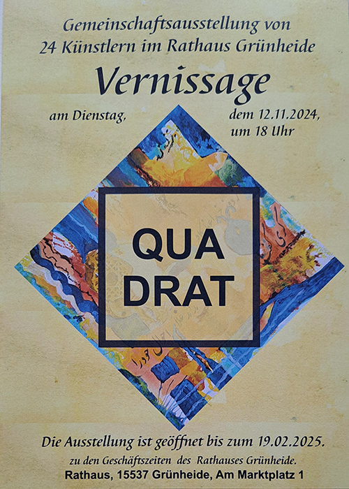 Gruppenausstellung Rathaus Grünheide, "Quadrat", kuratiert von Andreas Kramer und Nicoletta Furlan