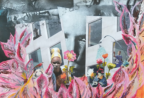 Papiercollage mit Acrylmalerei, 60 x 40 cm, 2021